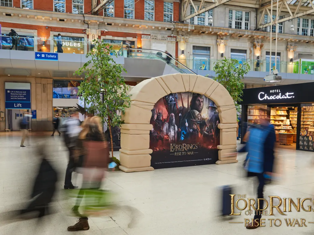 To mark the release of the latest Lord of the Rings film, the client sought a bold, immersive activation that would transport commuters into the heart of Middle-earth. The brief called for a visually arresting, interactive experience that could captivate a high-footfall audience at one of London’s busiest transport hubs—Waterloo Station. The goal was to merge physical and digital storytelling, allowing users to step into the cinematic universe and become part of the film’s narrative.